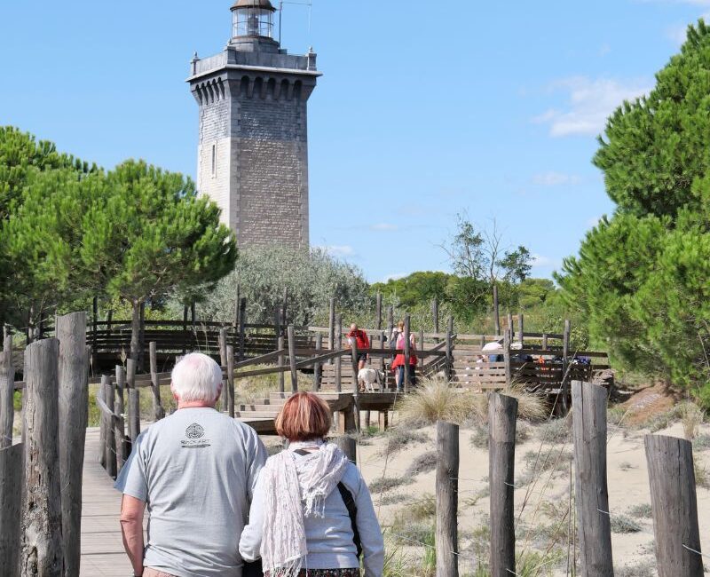 Cette balade offre des panoramas uniques sur la biodiversité camarguaise. Vous pouvez suivre le sentier jusqu’au phare de l’Espiguette, un emblème local qui se dresse majestueusement au bout de cette plage immense.
