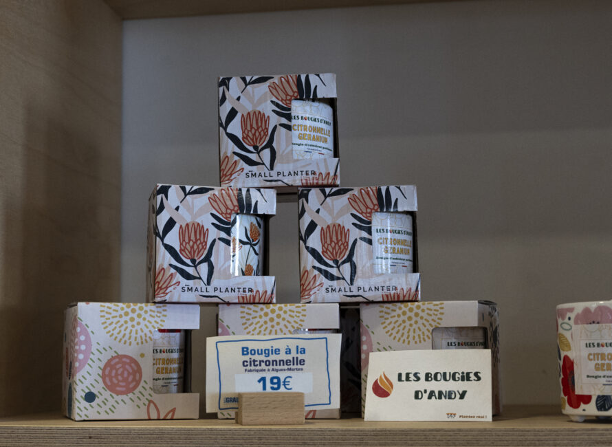 • Des bougies (qui sentent bon le sud) fabriquées à Aigues Mortes. Plusieurs senteurs et grammages allant de 12 à 19€
